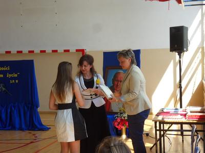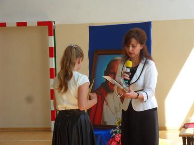 Po Mszy św. Pani dyrektor Anna Kowalczyk - Jas wraz z wychowawcami klas wręczyła nagrody i wyróżnienia najlepszym uczniom.