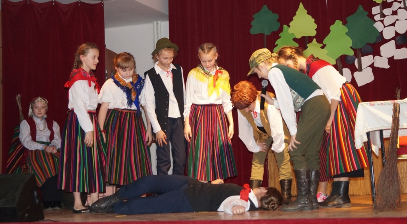 Cieszymy się, że po raz kolejny grupa teatralna z naszej szkoły pojechała 14 kwietnia do Centrum Kultury w Piekoszowie, by wziąć udział w XVI Festiwalu Teatralnym. Tym razem tematem spotkania były „Podania, legendy i obrzędy związane z regionem świętokrzyskim”. Koło teatralne w składzie: Olga Kowalska, Oliwia Kowalska, Urszula Kowalska, Angelika Mróz, Aleksandra Olszewska, Angelika Piotrowska, Kinga Podstawka, Amelia Podstawka, Wiktoria Titkin i Samanta Zarychta przygotowało obrzęd ludowy pt. „Zażegnania”. Inscenizacja opowiadała o tym, w jaki sposób dawniej pozbywano się różnych chorób, dolegliwości i uroków. Warto zaznaczyć, że młodzi aktorzy uczyli się mówić gwarą świętokrzyską. Nie zabrakło również tańca, ludowych piosenek oraz przyśpiewek. Uczniowie sprostali zadaniu, a przedstawienie zostało nagrodzone 3. miejscem. Gratulujemy i życzymy, by chęci i zapał grupy teatralnej się nie wyczerpywały. Niech każde następne wyzwanie będzie podejmowane z nie mniejszym zaangażowaniem.